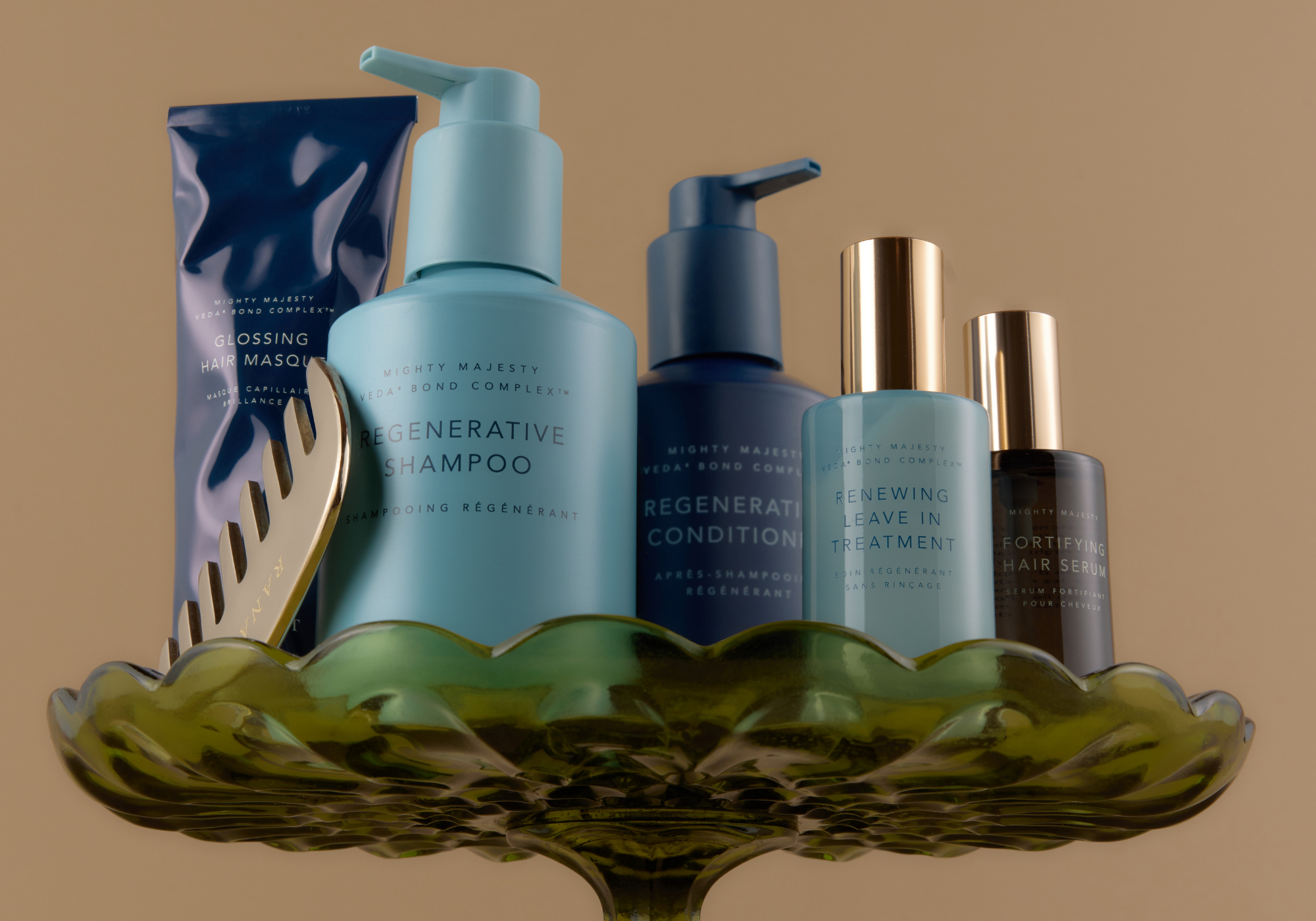 Mighty Majesty is a clinically tested Ayurvedic hair system powered by our proprietary Veda4 Complex. Designed to reduce visible breakage, support fuller-looking strands, and promote long-term strength, it delivers the performance of high-tech hair care through the time-tested science of Ayurveda.
