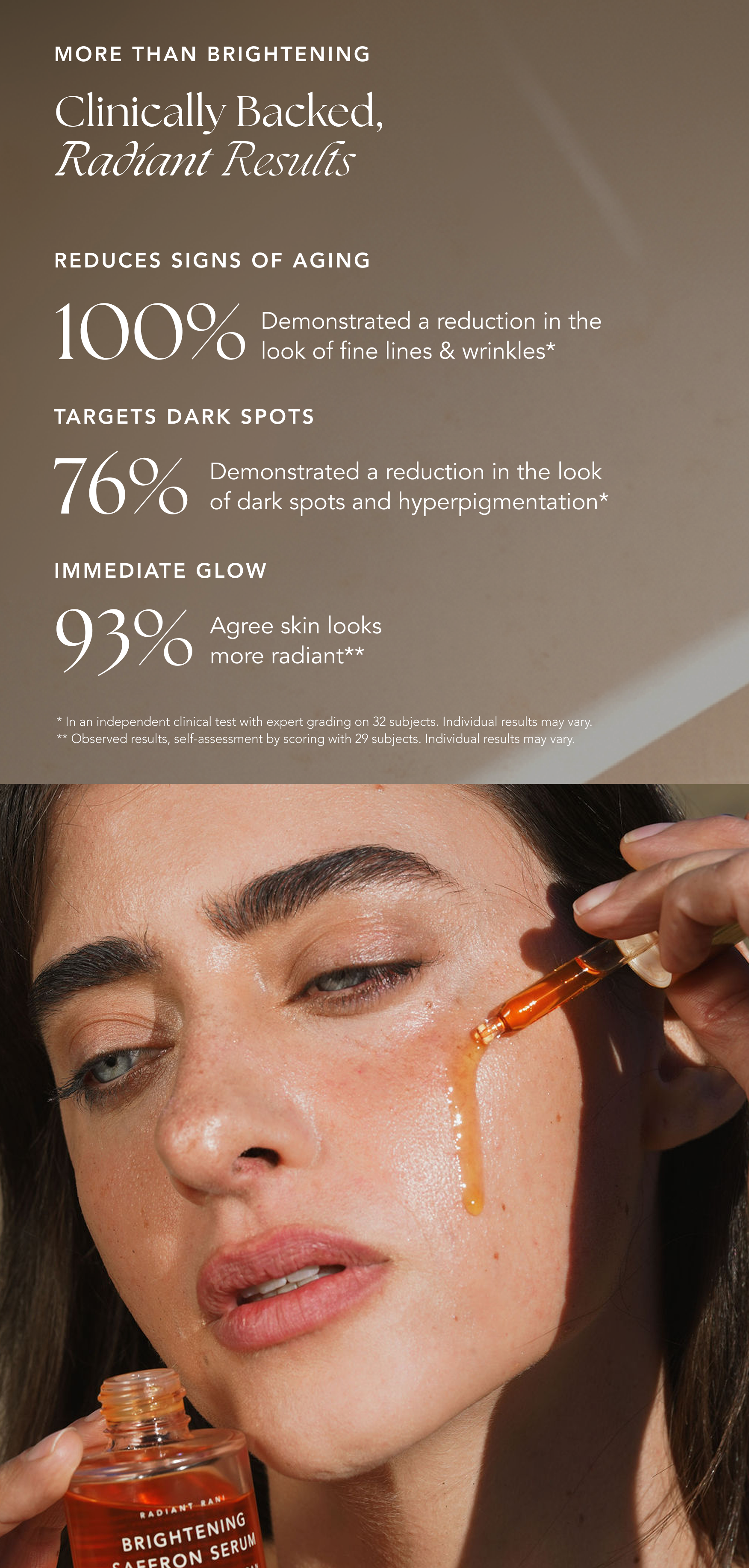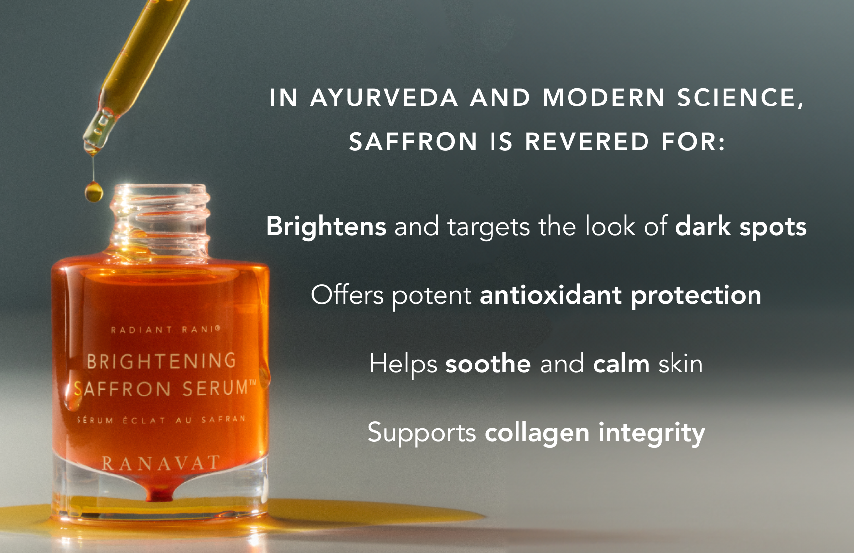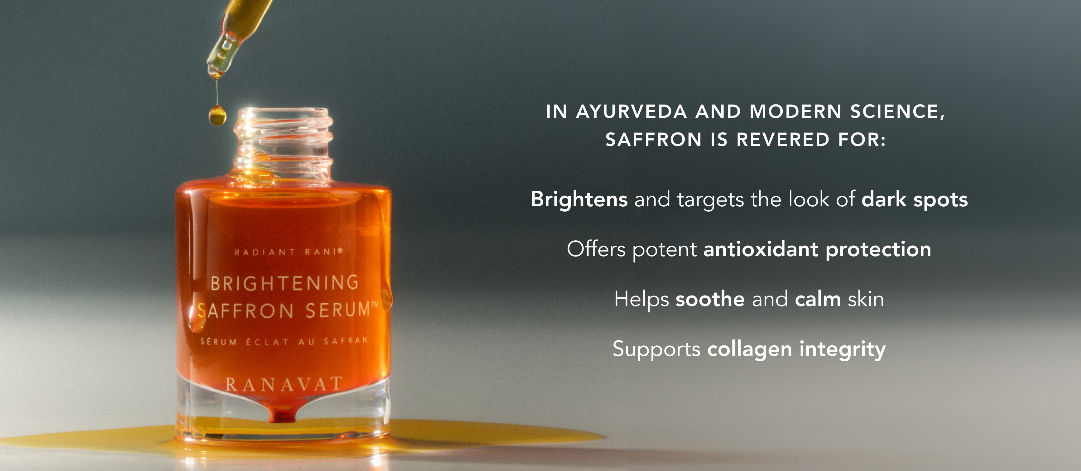 Saffron contains powerhouse actives (crocin and safranal) that go beyond targeting dark spots to holistically improve texture, resilience, and radiance, making saffron a true multi-correctional active ingredient in skincare, targeting the look of dark spots and fine lines.