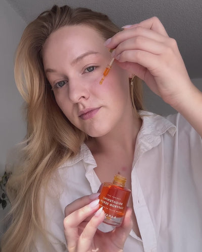 Apply 2-3 drops of the Brightening Saffron Serum to clean, damp skin, morning and evening. Massage gently into the face, neck and décolleté. Use on its own or layer under your favorite moisturizer and SPF. For amplified results, pair with weekly exfoliation and consistent hydration to maximize absorption and glow.