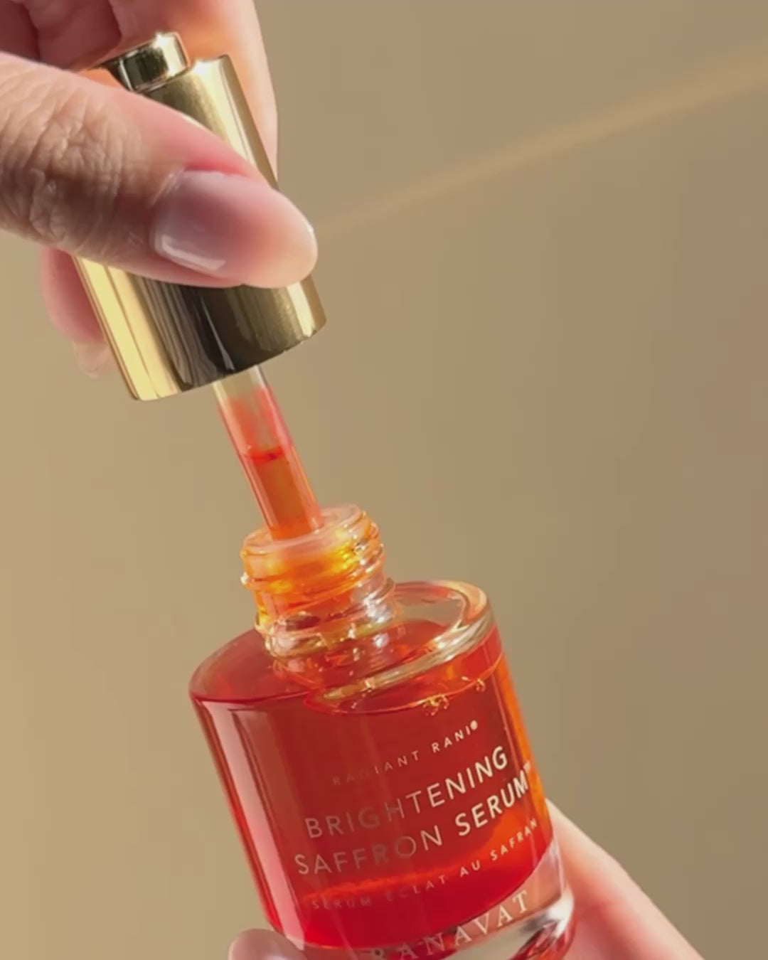 “The secret to RANAVAT’S ayurvedic Radiant Rani Brightening Serum formula includes saffron threads, which are believed to create a more even-toned complexion.”