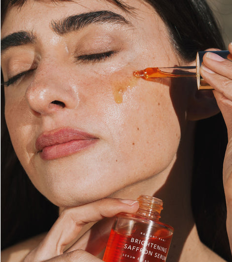 When layered together, our Brightening Saffron Serum does the heavy lifting with the most concentrated dose of Saffron. Layer with the Brightening Mineral Sunscreen for complete sun, blue light, and antioxidant protection.