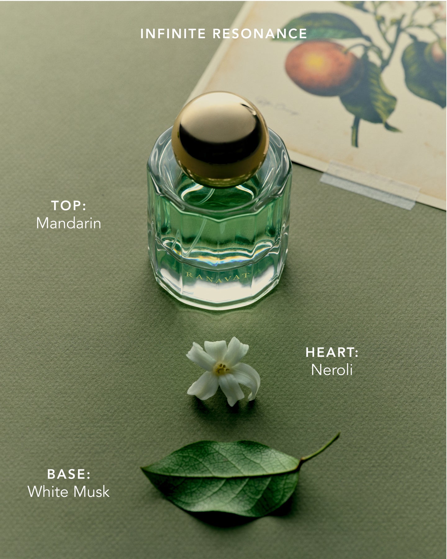 "Ranvant’s Infinite Resonance supports this inward journey beautifully. Fresh citrus softens into neroli, vetiver, and white musk, creating a scent that feels light, calming, and quietly luminous. It’s the fragrance of clearing your energy, resetting your nervous system, and preparing for a powerful reemergence."