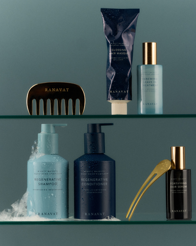 3. Shampoo + Condition: Wash 2-3 times to fully cleanse the oil, leaving your hair clean and healthy. Pair with the RANAVAT shampoo and conditioner for optimal results.