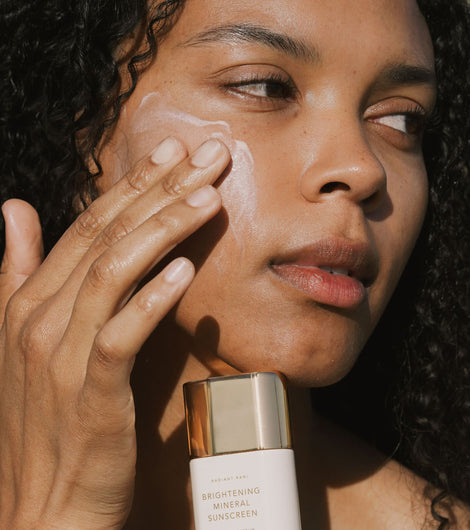 PROTECT using Brightening Mineral Sunscreen, SPF 50+ to defend against UVA/UVB rays, brighten, and increase radiance.