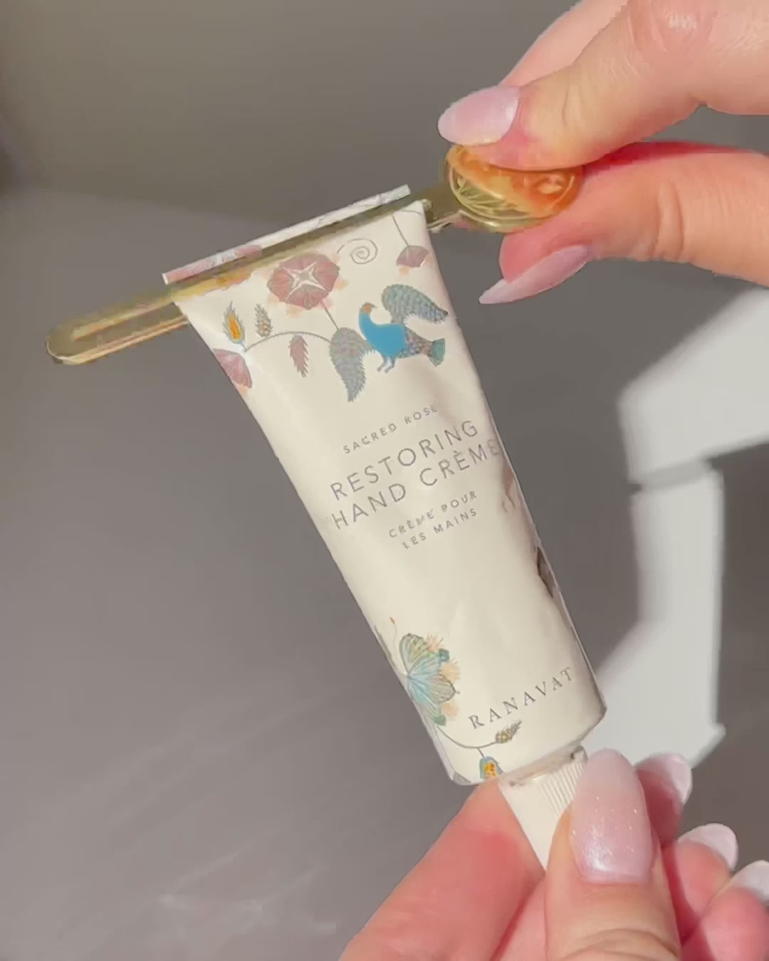 “Aims to restore your hands with sacred rose petals that are found in Pushkar, India...deeply moisturizing. The scent is light, just enough to make it feel like a luxury experience when you’re squeezing it out of its beautiful tube”