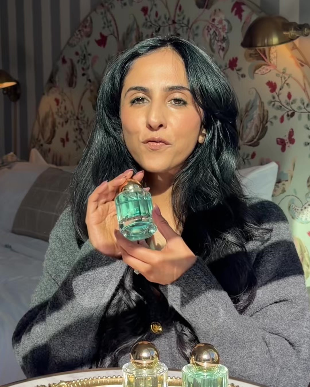 "At first glance, I instantly fell for the beautifully crafted bottle design. The gold tip and blue hue of the scent shining through the bottle looks absolutely regal. The scent smells so warm and inviting."